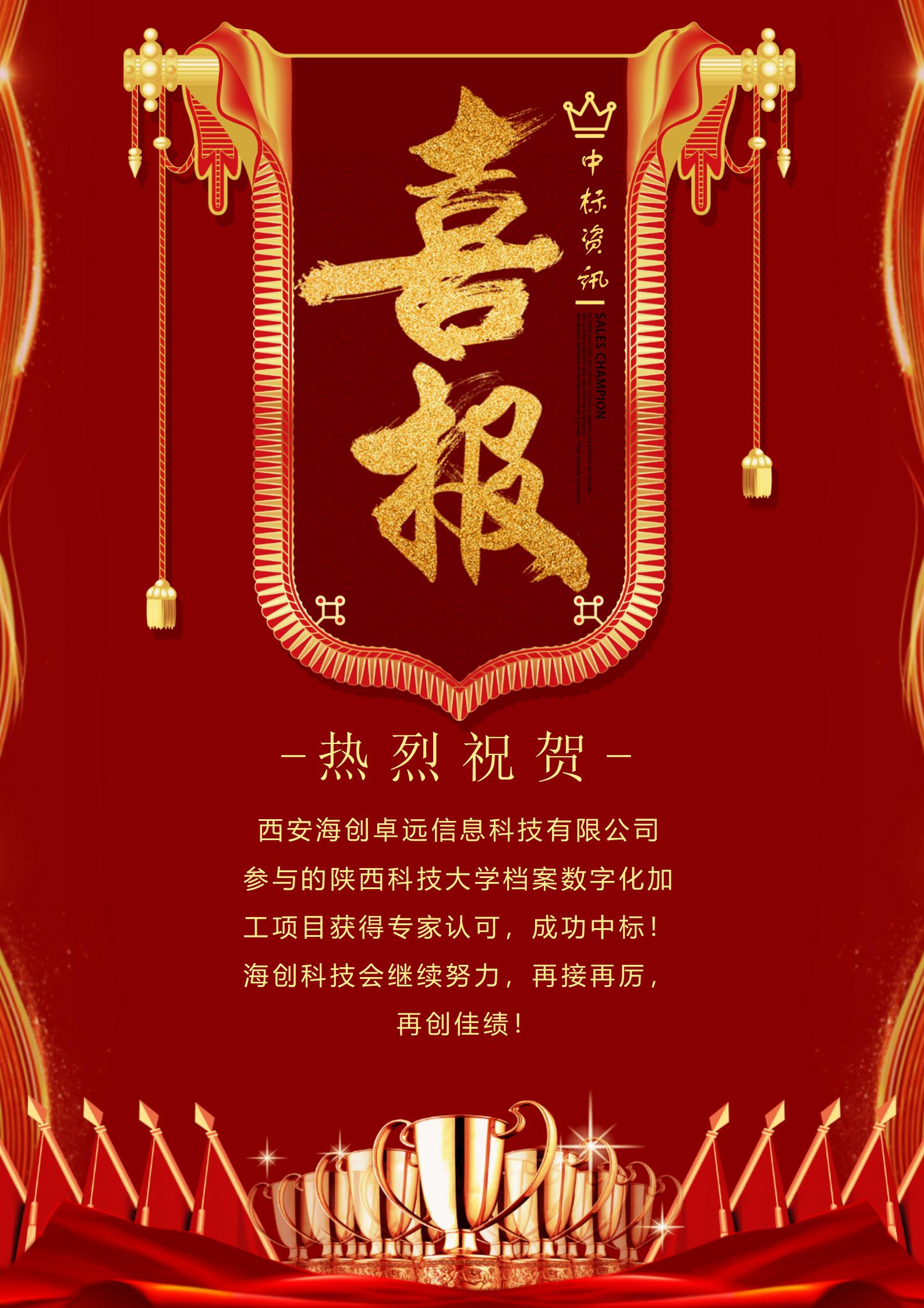 西安海創(chuàng)卓遠(yuǎn)信息科技有限公司本著誠(chéng)信鑄就品質(zhì)、創(chuàng)新引領(lǐng)未來(lái)的經(jīng)營(yíng)理念,以豐富的經(jīng)驗(yàn)和精湛的技術(shù),在參與的陜西科技大學(xué)檔案數(shù)字化項(xiàng)目中獲得專家認(rèn)可,成功中標(biāo)!